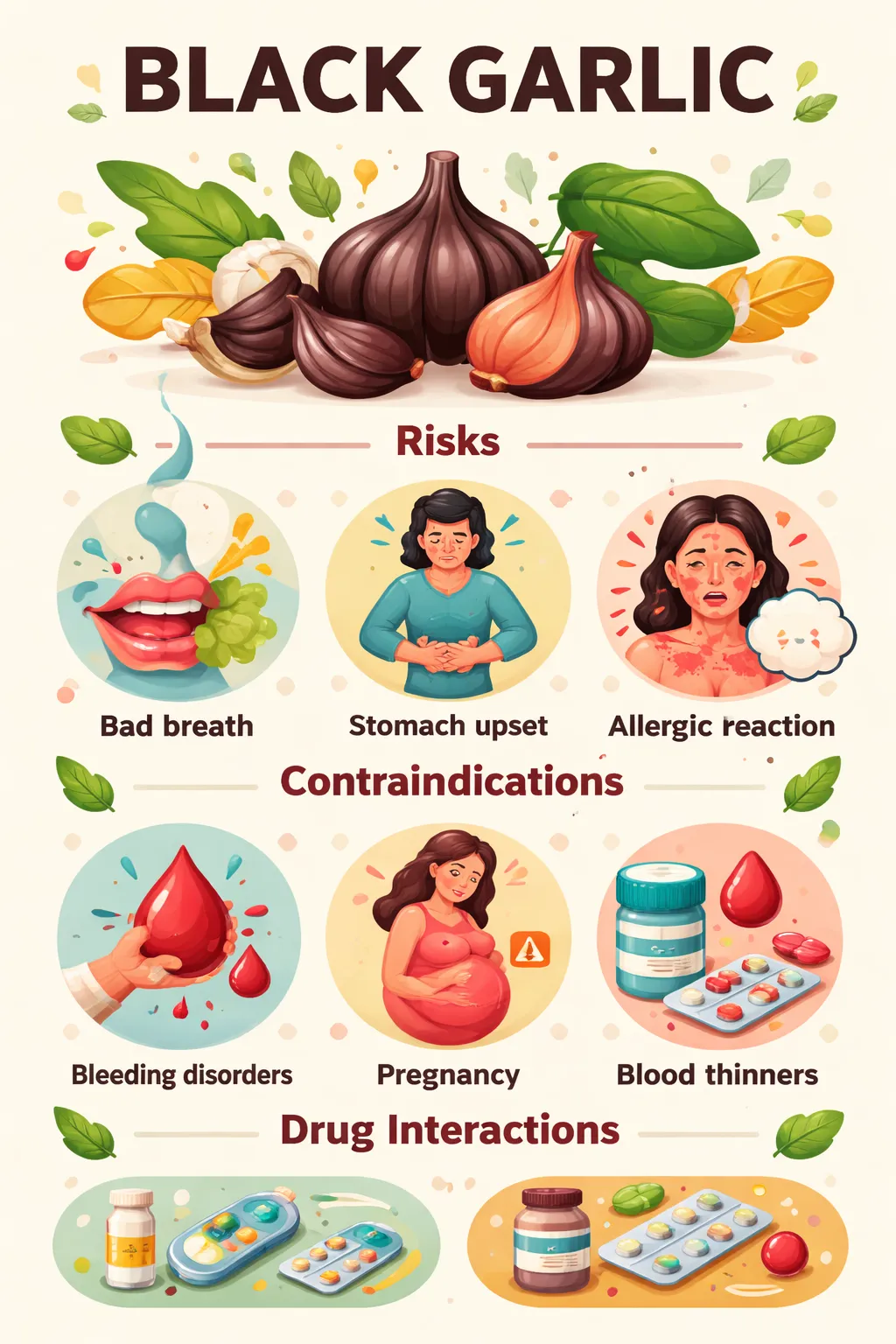 • داروهای فشار خون: سیر سیاه فشار خون را کاهش می‌دهد و مصرف همزمان ممکن است باعث افت شدید فشار شود.
