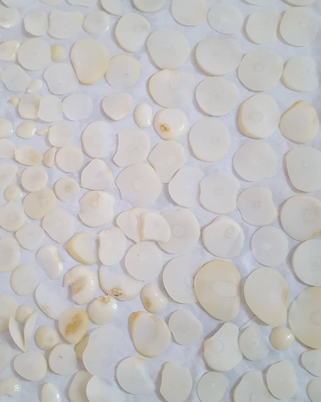 - روش: برشهای موسیر را در یک سینی توری استیل ضدزنگ، چوبی یا روی یک پارچه تمیز پهن کنید تا هوا از زیر هم عبور کند. بین تکهها فاصله بگذارید.